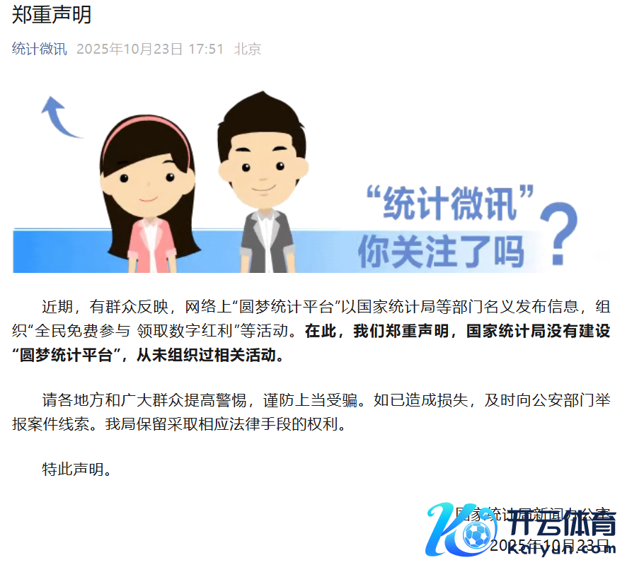 国度统计局留心声明:从未组织过“圆梦统计平台”相干行径万博manbext体育官网app官网国度统计局留心声明:从未组织过“圆梦统计平台”相干行径