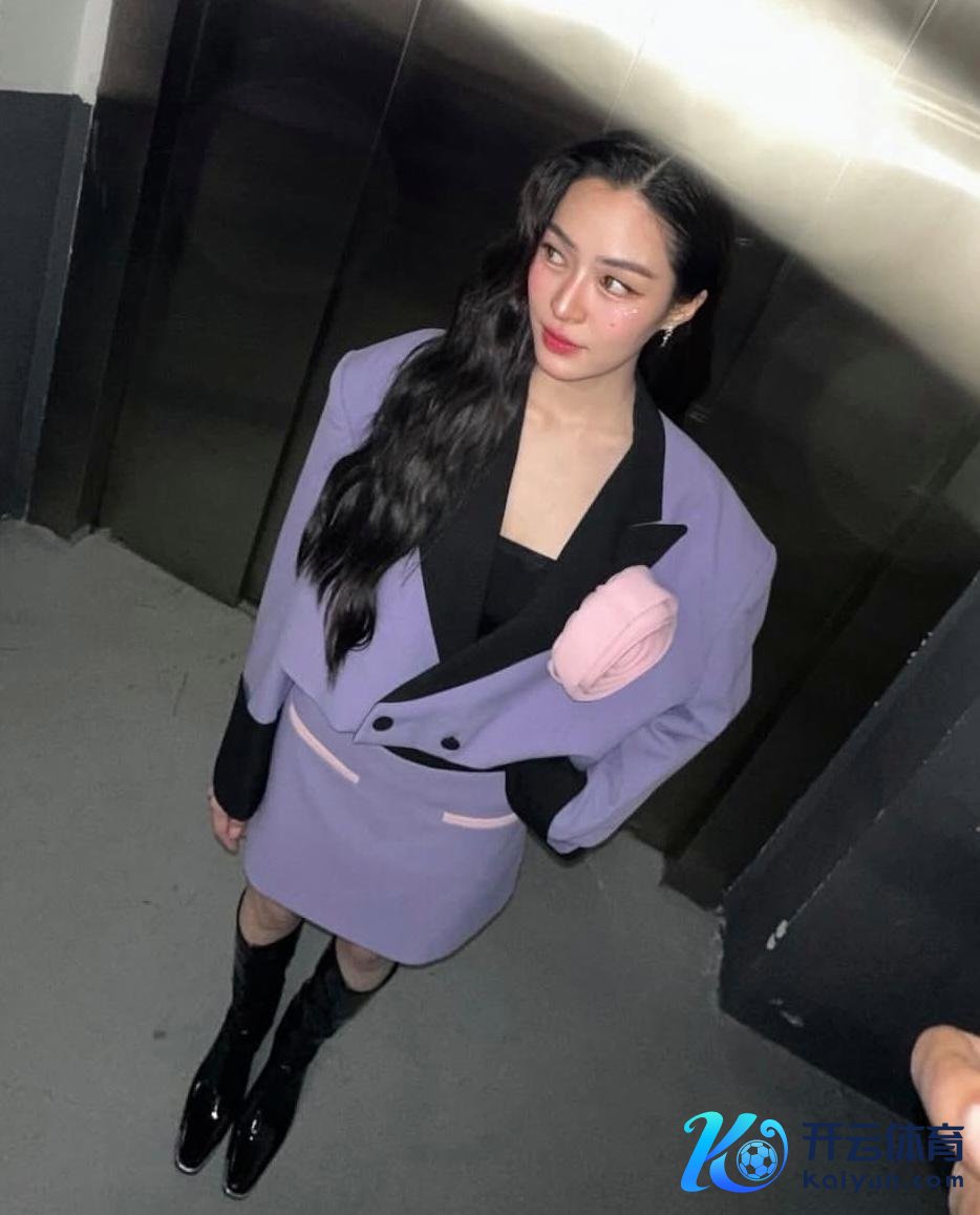 紫色廓形西服套装裙自带垫肩,气场王人备,紫色拼接玄色领口和袖口,粉色花朵的点缀让整套look的颜色呈现出矛盾好意思。