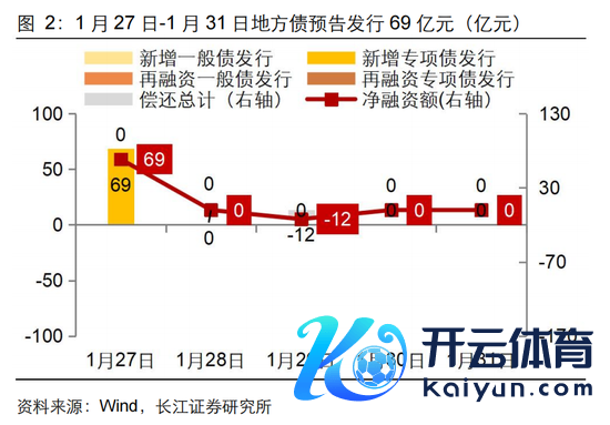 1月27日-1月31日地点债共刊行69亿元。其中新增债69亿元(新增一般债0亿元,新增专项债69亿元),再融资债0亿元(再融资一般债0亿元,再融资专项债0亿元)。