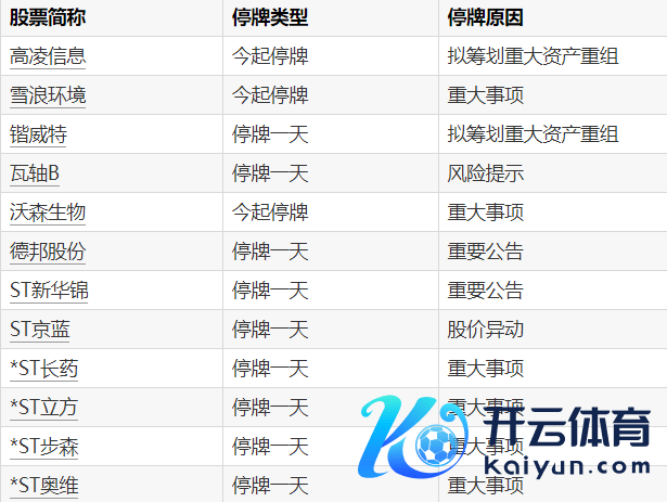 A股停牌教导:12股当天停牌万博manbext体育官网app(中国)官方网站A股停牌教导:12股当天停牌