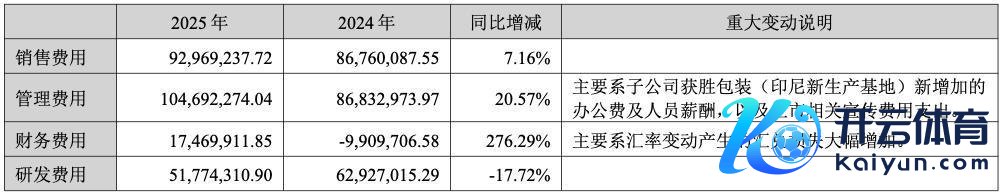 敷陈期内,公司处分用度同比增长20.57%,主要系子公司告捷包装(印尼新坐蓐基地)新加多的办公费及东说念主员薪酬,以及上市干系宣传用度支拨。财务用度同比增长276.29%,主要系汇率变动产生的汇兑赔本大幅加多。