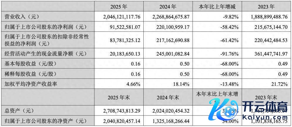 4月17日,富岭股份(001356)表露2025年年度敷陈。2025年,公司罢了营业总收入20.46亿元,同比下降9.82%;归母净利润9152.26万元,同比下降58.42%;扣非净利润8378.13万元,同比下降61.42%;筹画当作产生的现款流量净额为2018.37万元,同比下降91.76%;敷陈期内,富岭股份基本每股收益为0.16元,加权平均净钞票收益率为4.66%。公司2025年度分派预案为:拟向举座股东每10股派现0.32元(含税)。